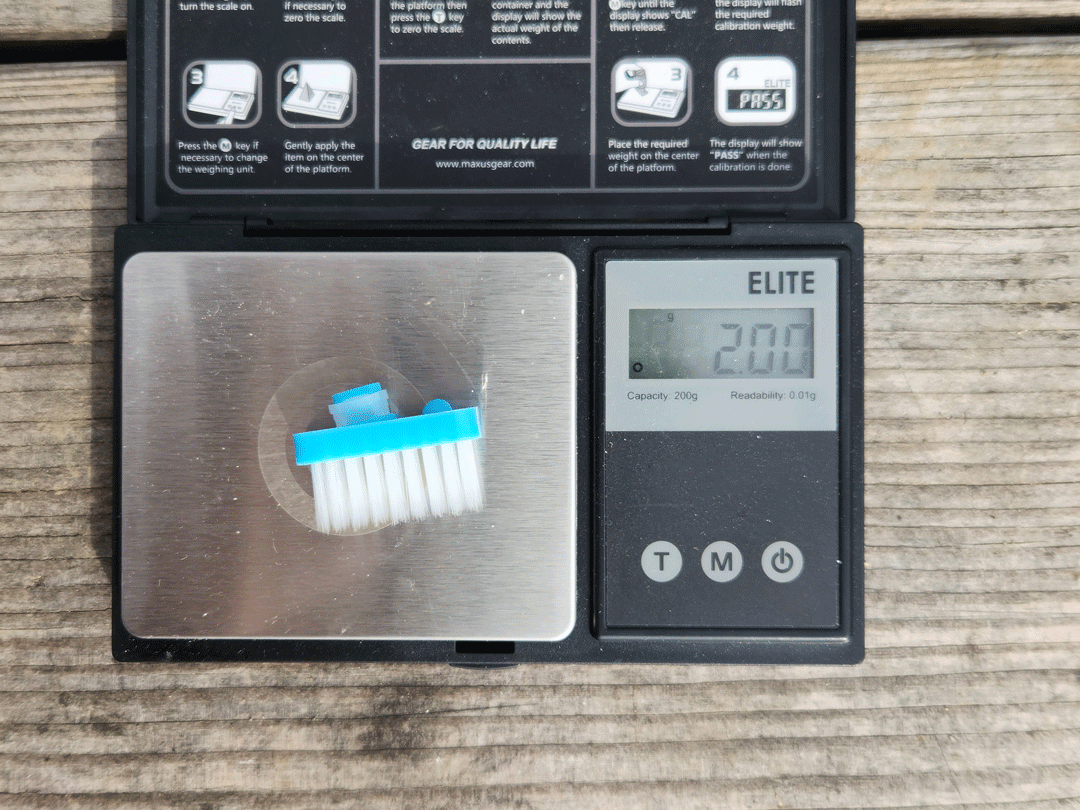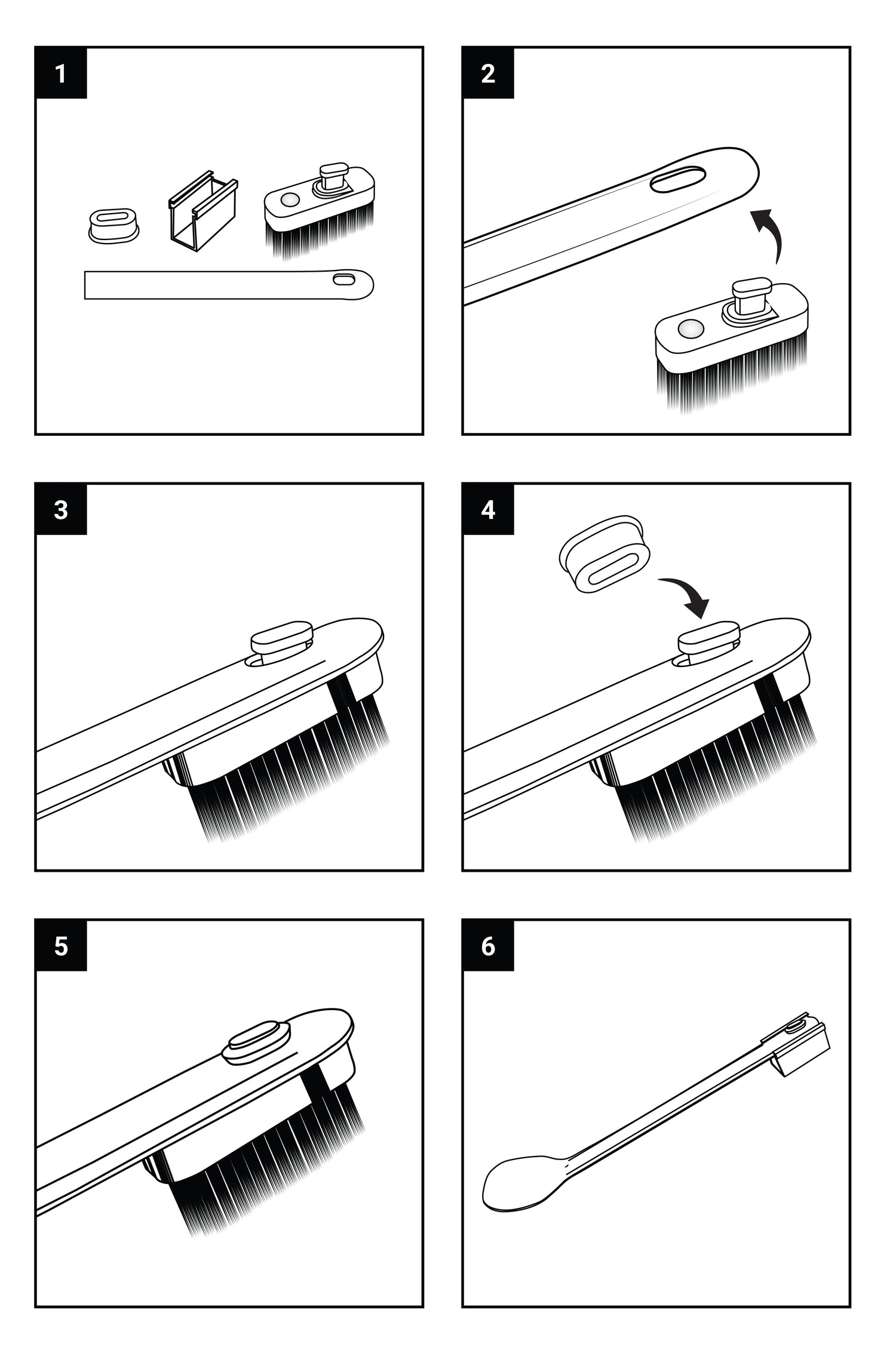 Then, slide the stem in the hole, making sure the bristles are facing down and that the stabilizer dot it closer to the spoon end.