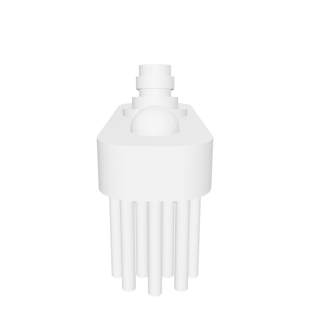 Then, slide the stem in the hole, making sure the bristles are facing down and that the stabilizer dot it closer to the spoon end.